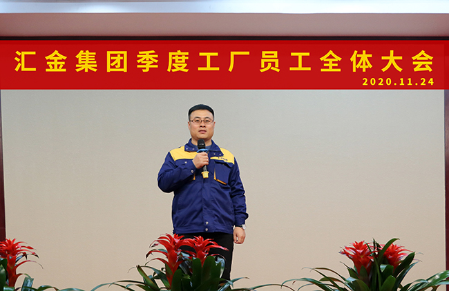 2020年11月24日,匯金集團第四季度工廠員工大會在匯金生產中心三樓報告廳成功召開。匯金集團董事長郭榮勛、CEO兼總裁孔攀紅、生產總監鞏康如及工廠全體員工隆重出席此次會議。