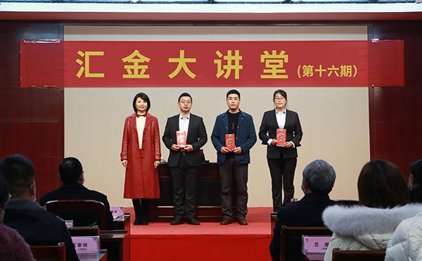 2021年3月3日下午,第十六期“匯金大講堂”在匯金生產(chǎn)中心多媒體廳成功舉行。當(dāng)天,借助“匯金大講堂”這個(gè)平臺(tái),集團(tuán)公司為在銷售崗位任職滿三年的員工舉行了銷售工齡獎(jiǎng)金頒發(fā)儀式。