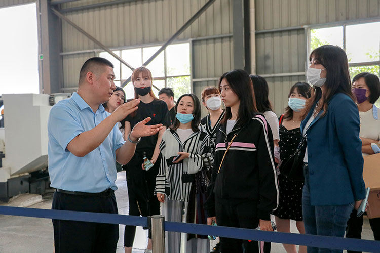 在郭昌通總經(jīng)理等領(lǐng)導(dǎo)的陪同下,YES五期師生一行通過匯金工廠中心主干道進(jìn)入?yún)R金智能裝備車間,現(xiàn)場大家進(jìn)入設(shè)備展示專區(qū),近距離參觀HJ節(jié)能燃燒器、翻板閥等熱銷產(chǎn)品。郭昌通總經(jīng)理擔(dān)任主要講解員,從集團(tuán)規(guī)模實(shí)力、發(fā)展速度、行業(yè)地位、主營業(yè)務(wù)、工廠管理、客戶服務(wù)等方面給嘉賓進(jìn)行系統(tǒng)講述,匯金智能裝備銷售總經(jīng)理朱勝楠和生產(chǎn)中心廠長劉群分別從銷售和技術(shù)角度,對(duì)大家咨詢的問題進(jìn)行一一專業(yè)解答。靜心聆聽過程中,同學(xué)們不時(shí)思考發(fā)問,并在管理理念、產(chǎn)品研發(fā)、數(shù)字化管理等細(xì)節(jié)方面展開深入的探討和交流。